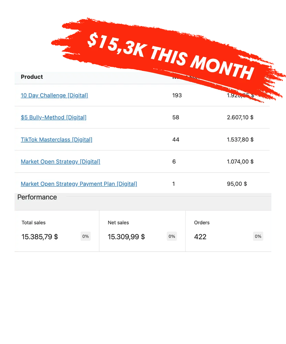 It's simple: You will get everything we talked about… How I setup & sell digital products... How I make my phone go “Ca-Ching” every couple of minutes… How you can copy & paste my entire business for yourself... If you complete the whole challenge and it STILL doesn't work for you… Just message us and we'll help you 1on1 per chat until you make your first 10 sales - You have nothing to loose!